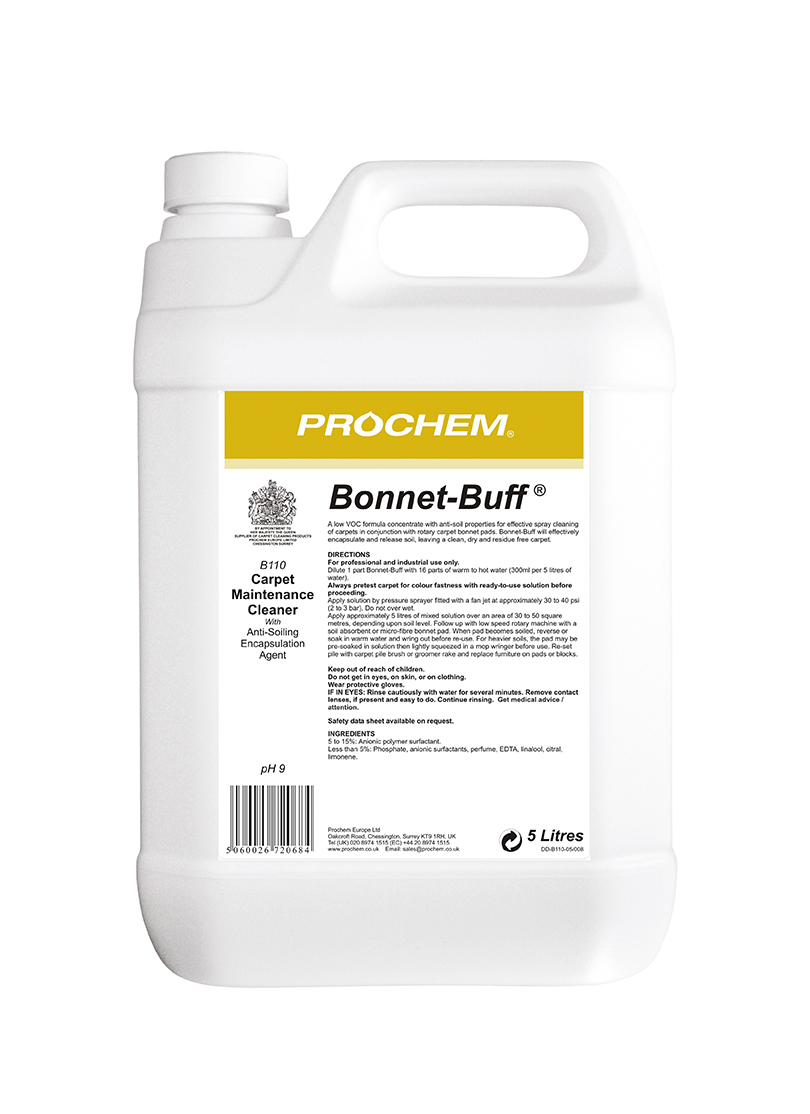 - Low VOC formula concentrate with anti-soil properties for effective spray cleaning of carpets in conjunction with rotary carpet bonnet pads.