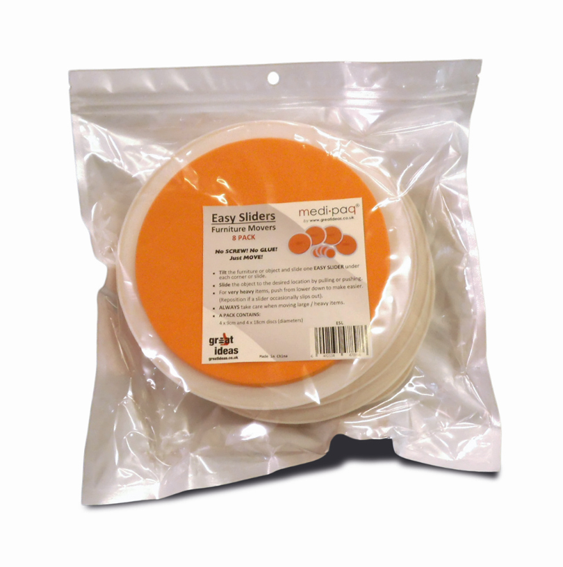 4 large and 4 small sliders fit under furniture feet. (pack of 8)