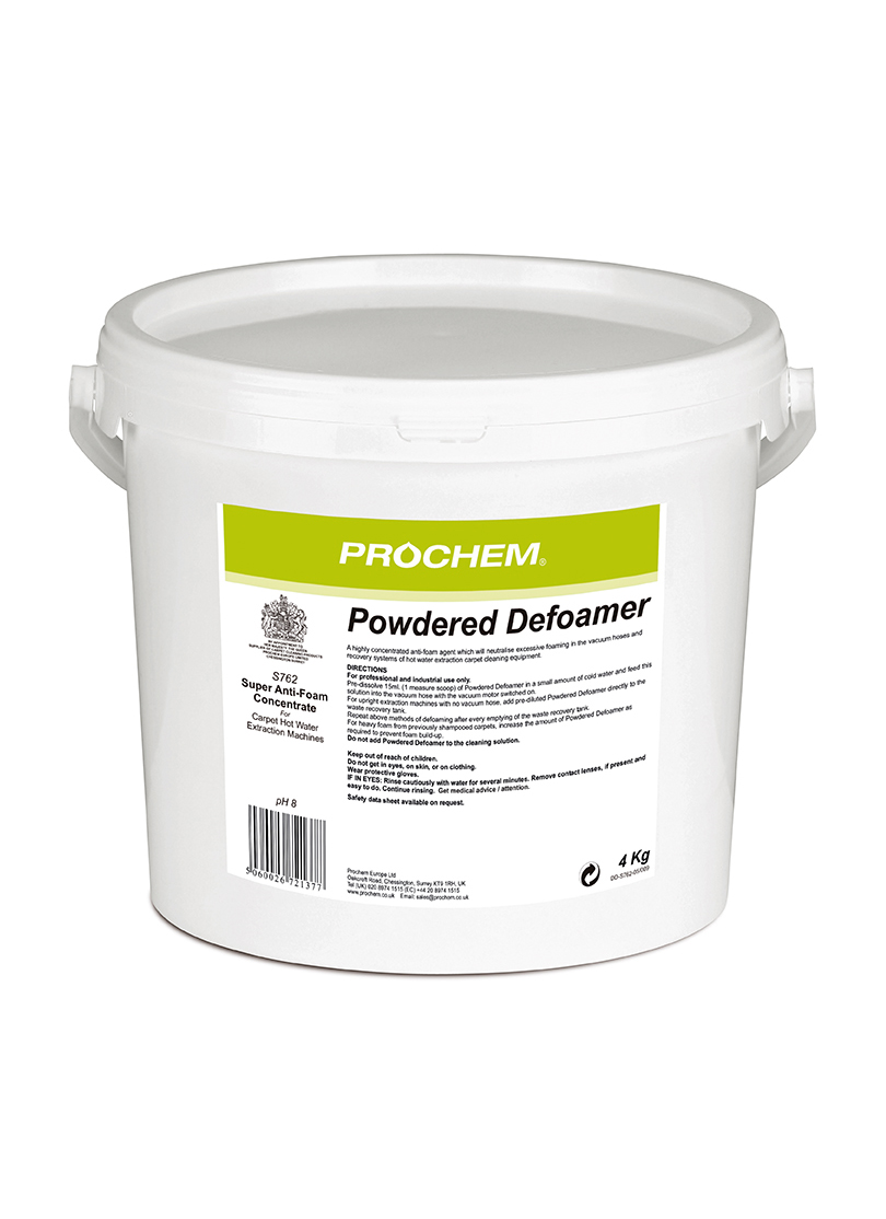 - Economical powdered defoaming agent which can be pre-diluted and added into waste tanks, prior to extraction cleaning.